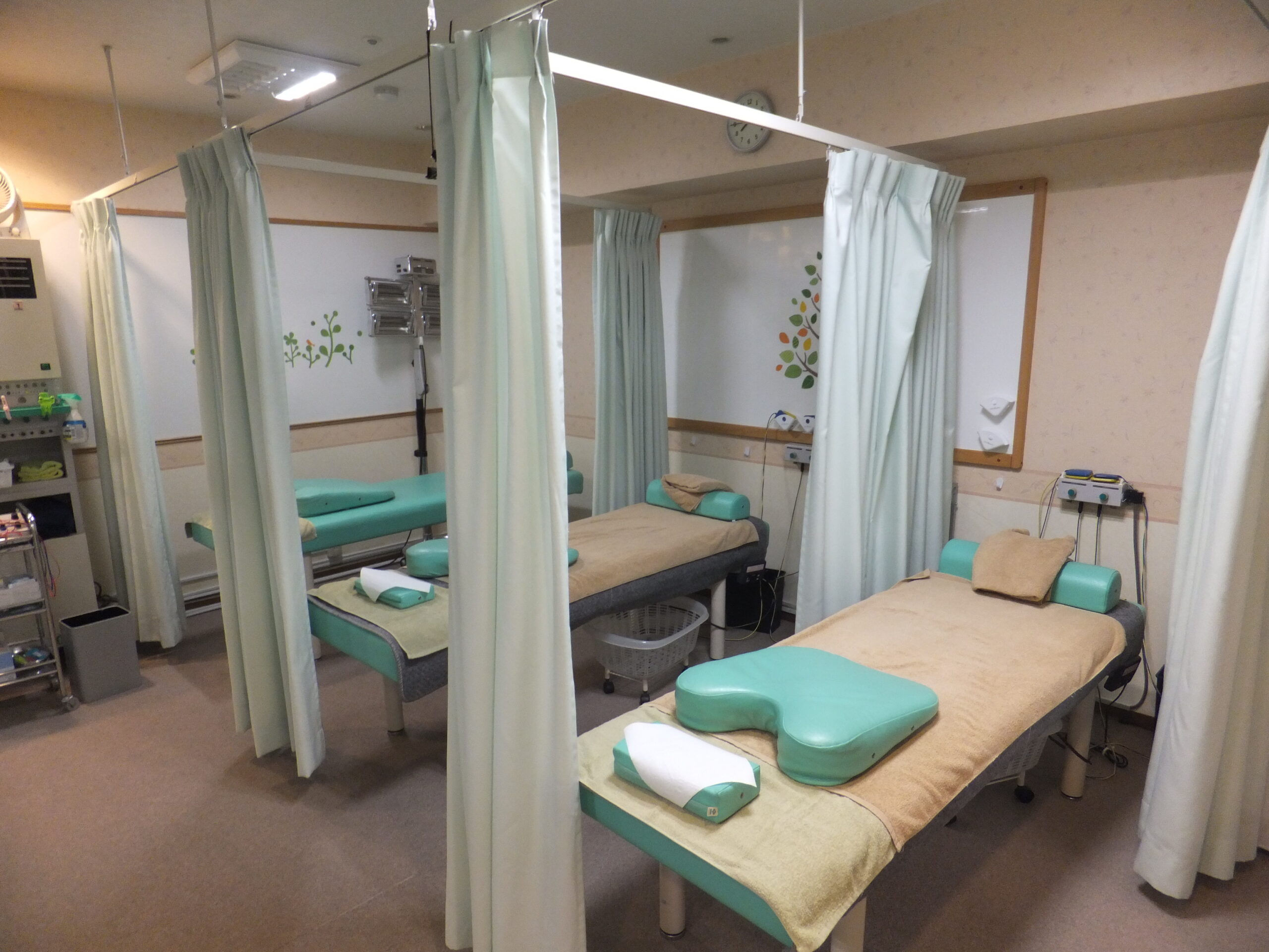 • 温熱から干渉低周波治療など、リハビリ機器が充実している