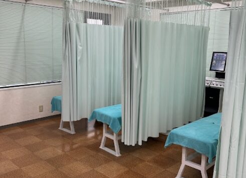 リハビリは治療器機を各種備えており柔道整復師による施術も行う