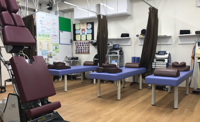 赤外線治療器、半導体レーザー治療器、腰椎けん引、頚椎けん引などで治療を行う