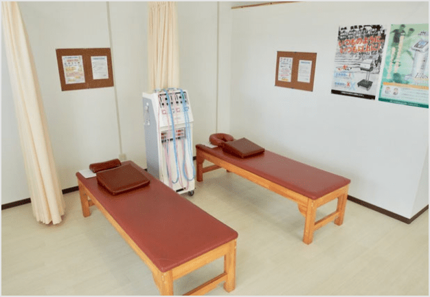 電気治療機器やトレーニングスペースを備えているので機器+手技の両面アプローチ可能