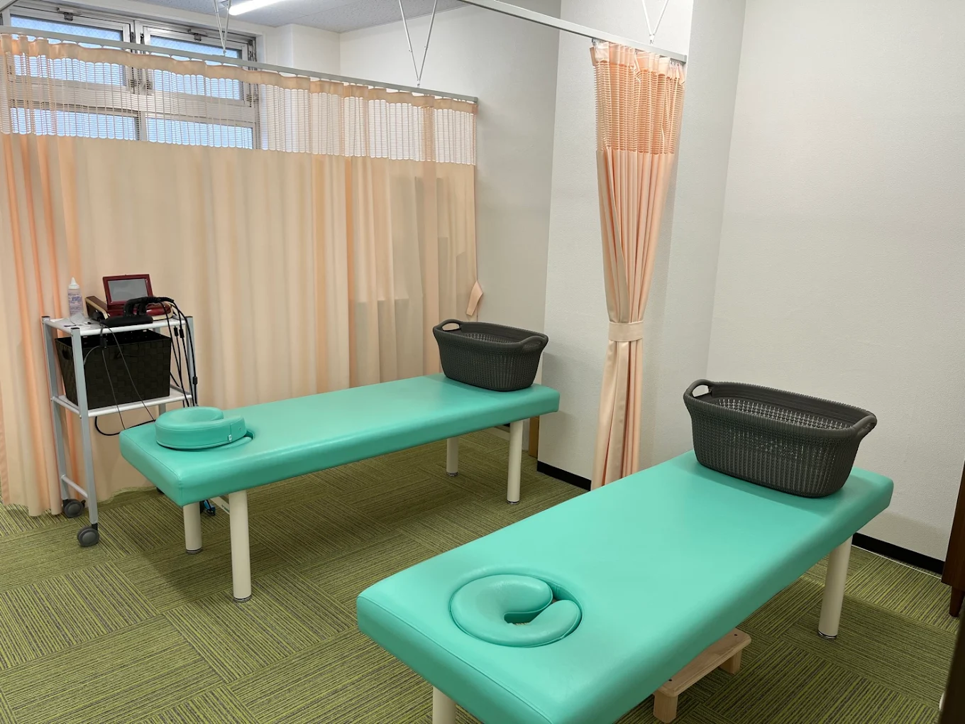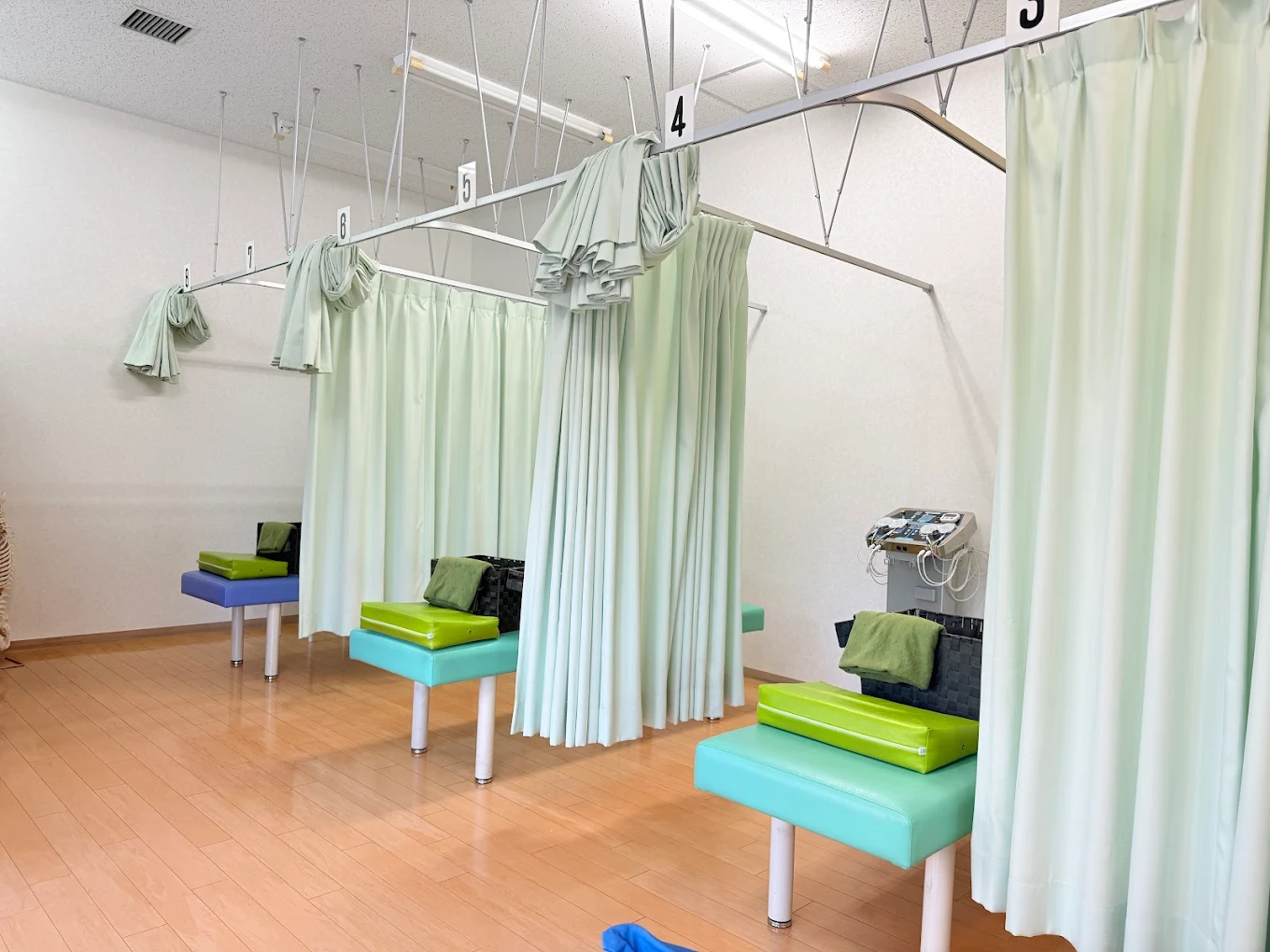 カーテンで仕切られた空間で施術、プライバシーが保たれる